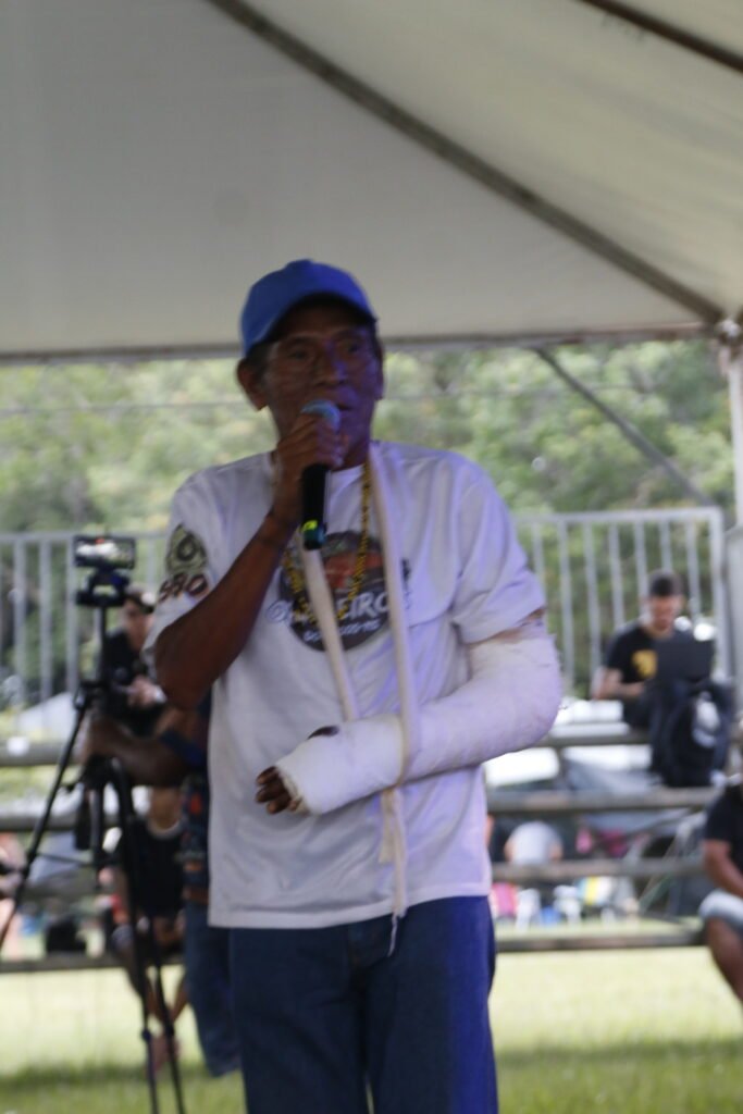 A sala mergulhou em um silêncio pesado quando foi relembrada a história de um menino do povo Karajá que, aos sete anos de idade, presenciou o massacre de sua família e teve que tomar a decisão instantânea entre correr para a floresta ou morrer junto aos seus.