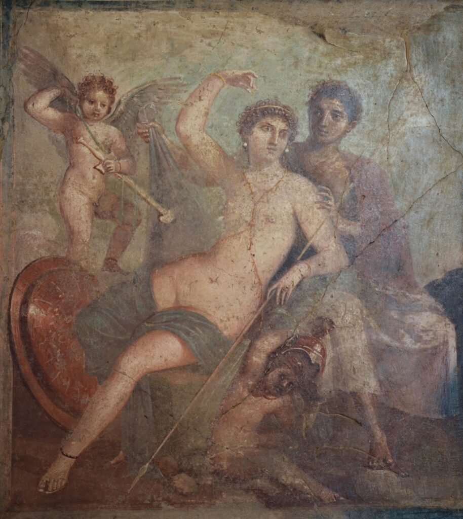 - File:Fourth Style fresco depicting Ares and Aphrodite, from the House of Mars and Venus in Pompeii, Naples National Archaeological Museum (17491135395).jpg – Wikimedia Commons, acessado em dezembro 21, 2025, https://commons.wikimedia.org/wiki/File:Fourth_Style_fresco_depicting_Ares_and_Aphrodite,_from_the_House_of_Mars_and_Venus_in_Pompeii,_Naples_National_Archaeological_Museum_(17491135395).jpg